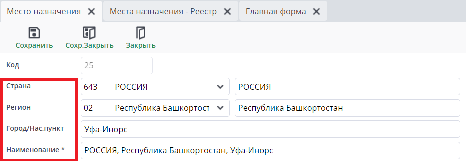 справочник места назначения