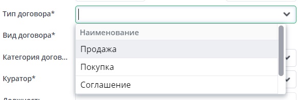 Учет договоров, контрагент