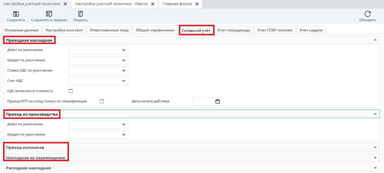 Настройка учетной политики