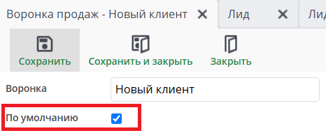 Для того, чтобы один из Этапов отображался в Лидах, необходимо поставить галочку По умолчанию