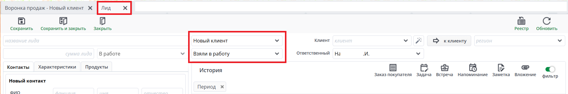 Сохраните и закройте документ. Теперь в Лидах Наименование этапа и его Статус заполняются автоматически при создании документа