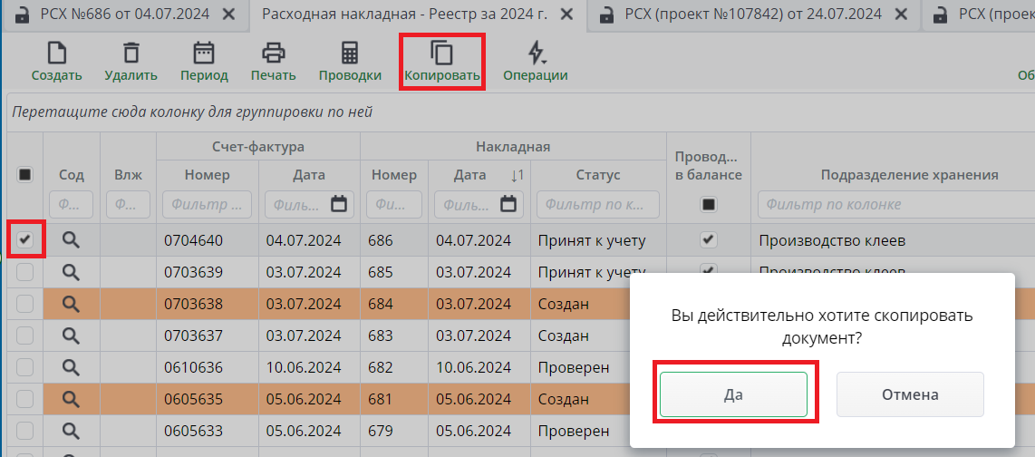 Расходные накладные