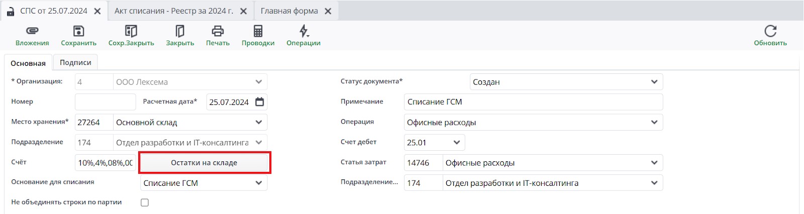 Акт списания