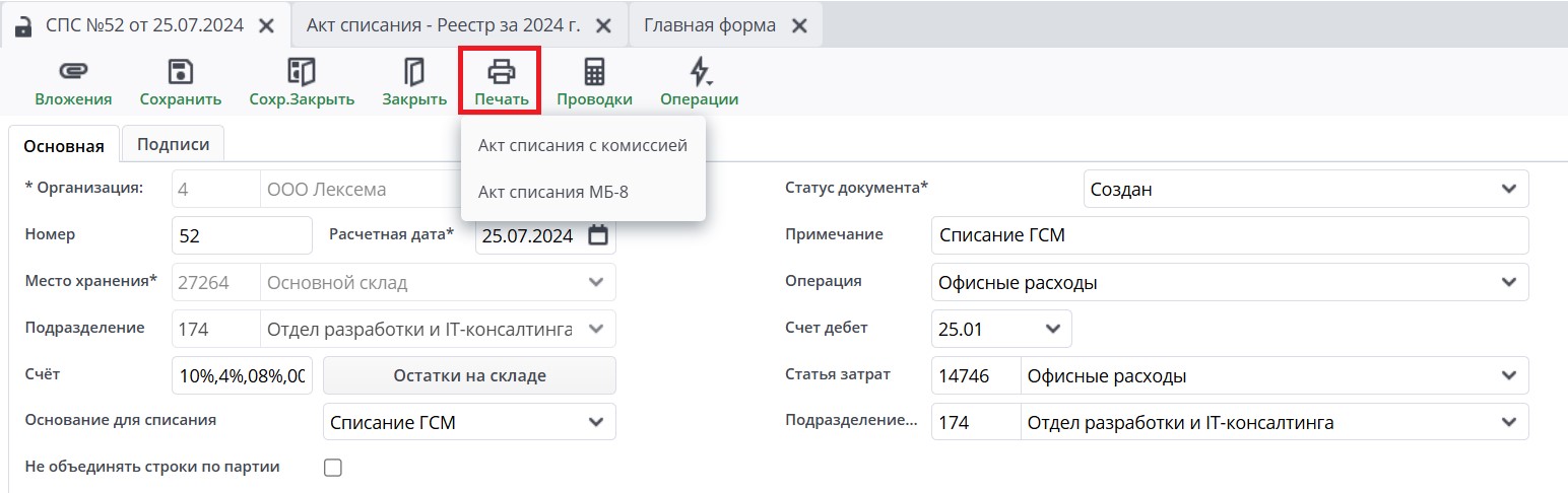 Акт списания