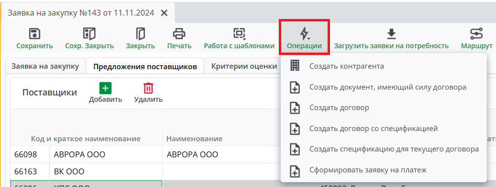 Заявка на закупку