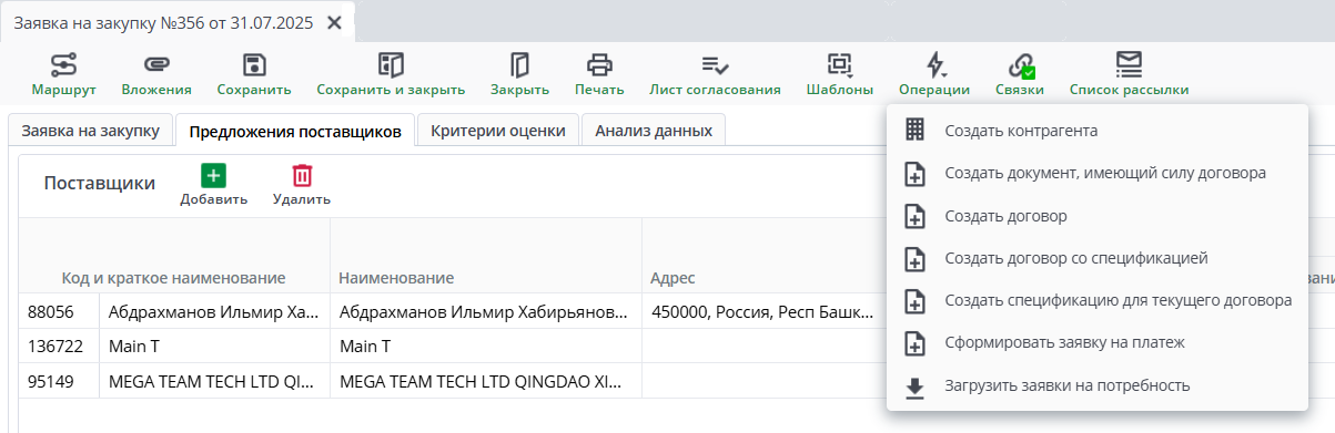 Заявка на закупку