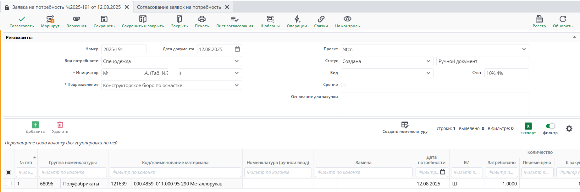 Заявка на потребность
