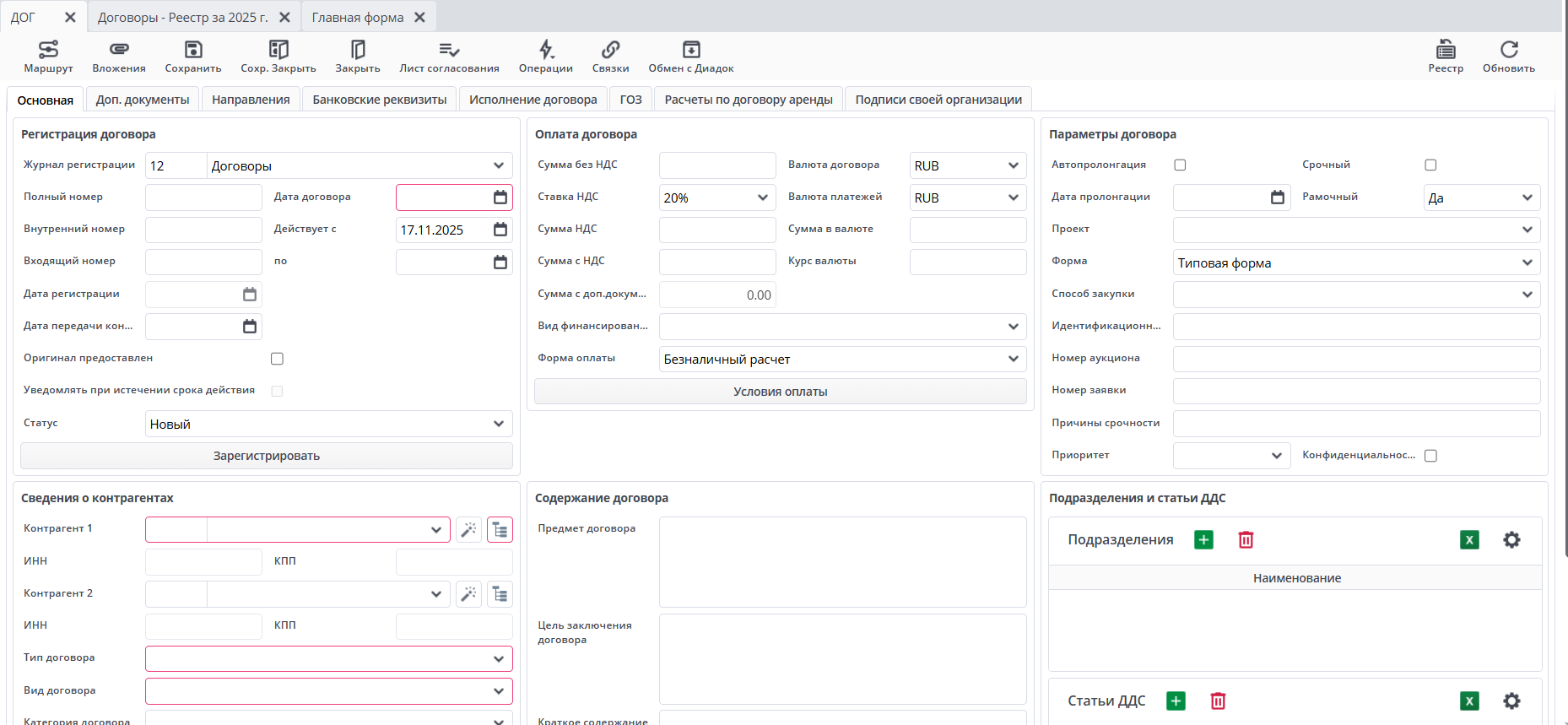 Учет договоров