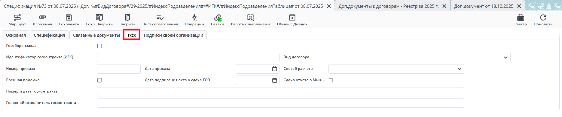!!! Примечание Для того, чтобы видеть эту вкладку у вас должна быть добавлена константа Учет ГОЗ, значение 1.