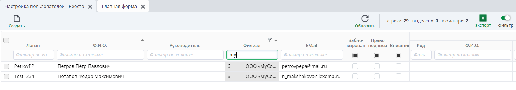 Настройка пользователей