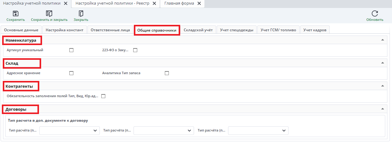 Настройка учетной политики