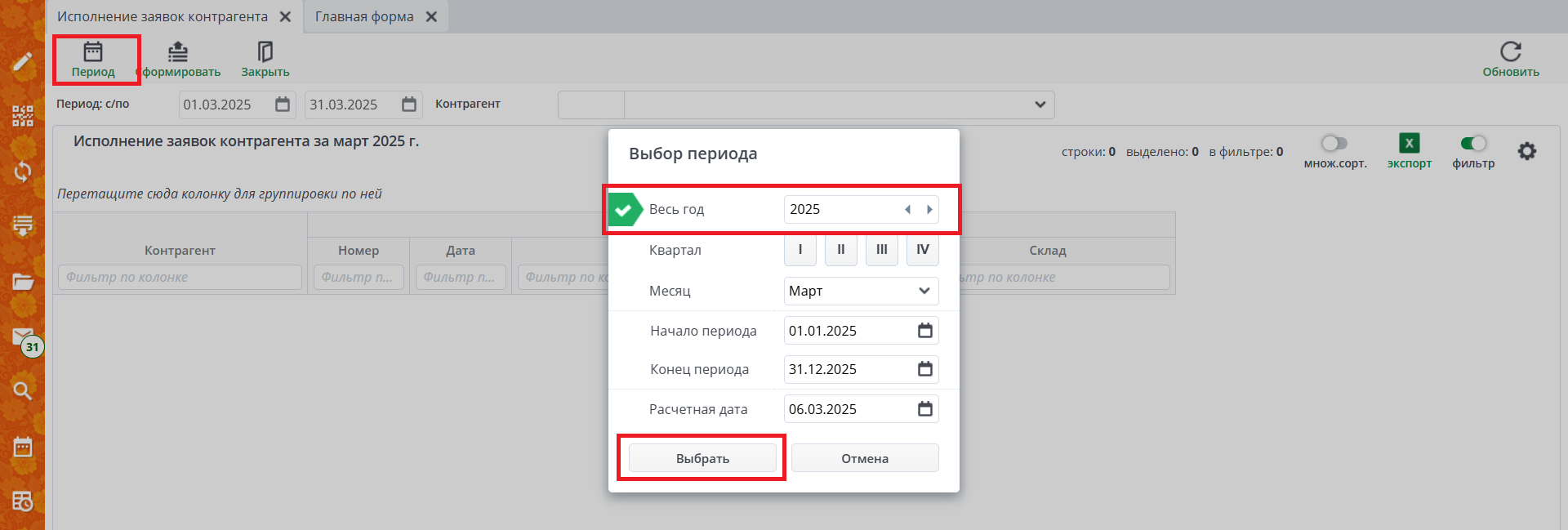 Исполнение заявок контрагента