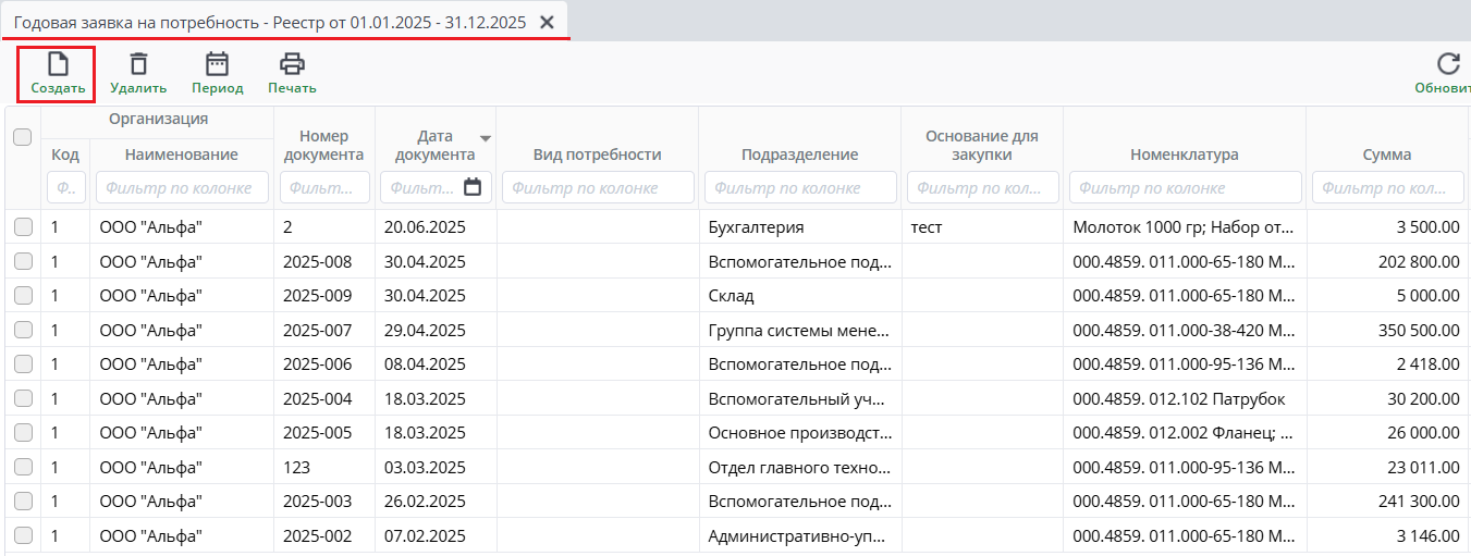 Годовая заявка на потребность