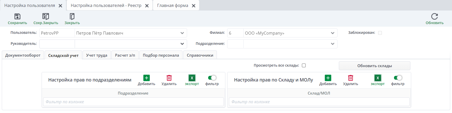Настройка пользователей