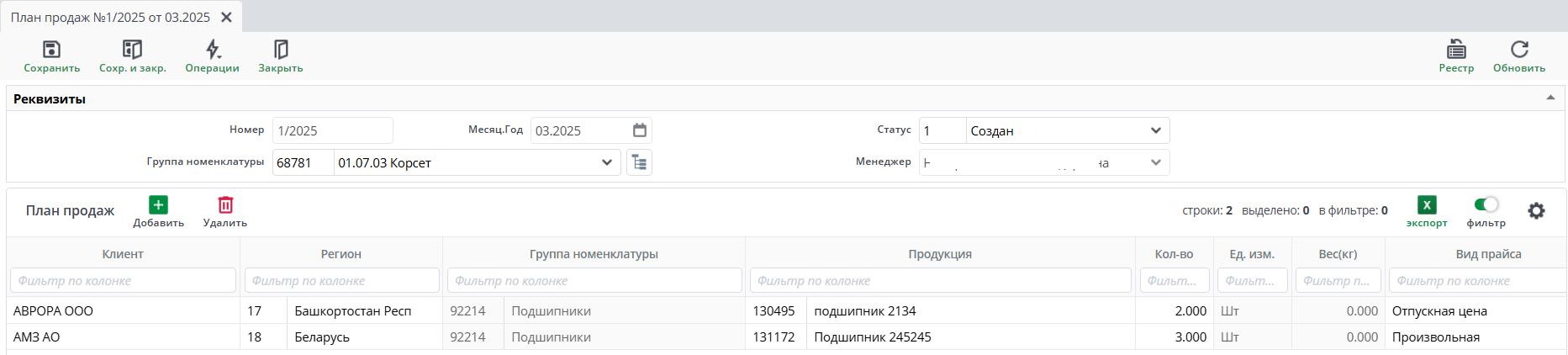 Планы продаж