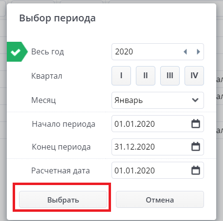 При выборе пункта меню, в случае, если пользователь первый раз обращается к реестру документов «Расходы будущих периодов (РБП)», появляется окно выбора расчетного периода.