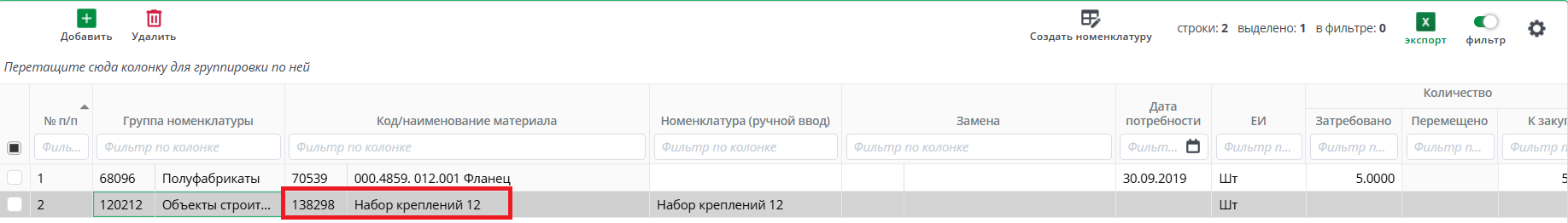 Годовая заявка на потребность