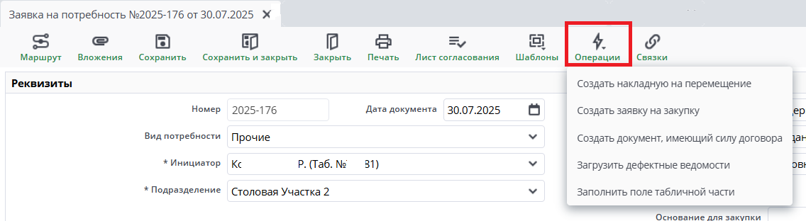 Двойным щелчком по заявке на потребность можно перейти в нее. Она откроется в отдельной вкладке.
