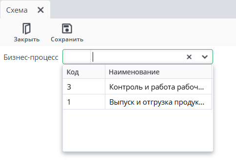 Для того, что бы открыть схему, нужно в лукапе "Бизнес-процесс" выбрать тот, по которому мы хотим отобразить схему.