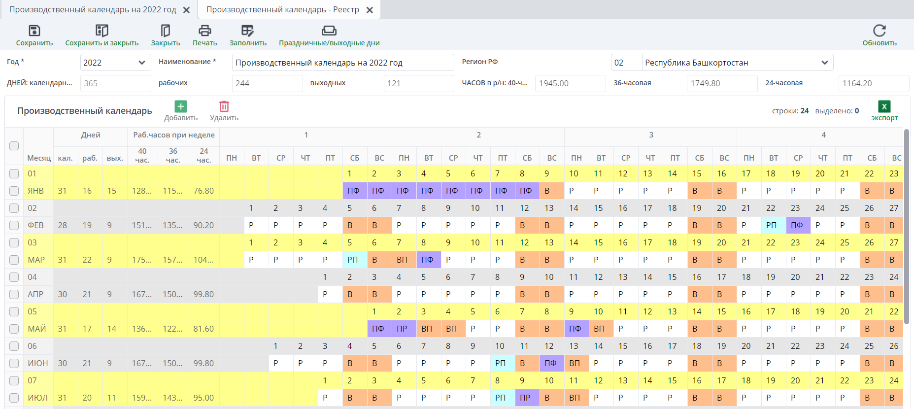 Производственный календарь