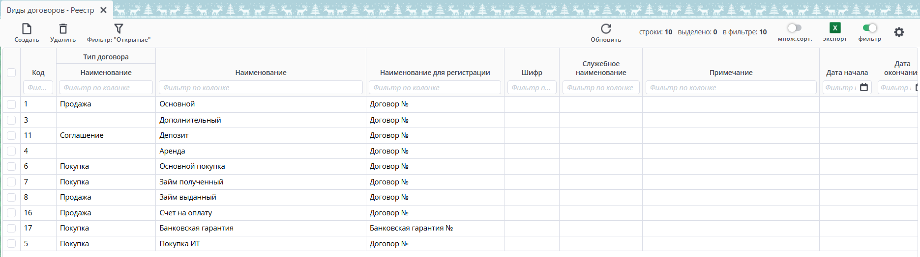 Учет договоров законченный