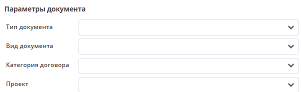 • Тип документа не обязательное для заполнения поле. Данные выбираются из выпадающего списка.