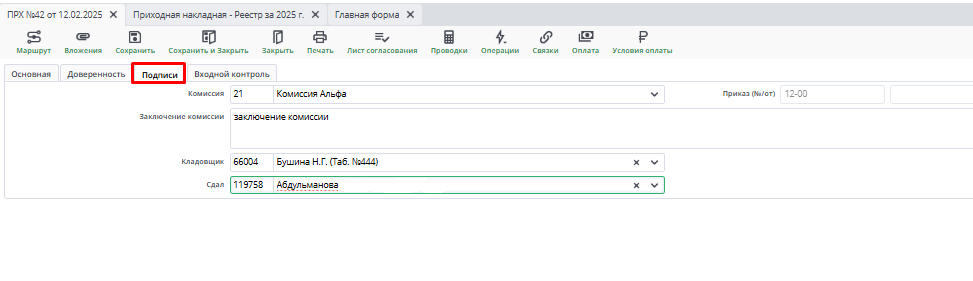 1. в Приходной накладной (вкладка Входной контроль)