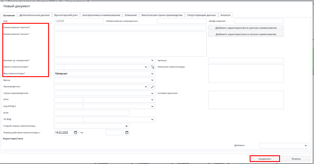 • Наименование номенклатуры;