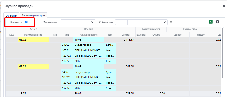 • Дебет, Кредит выбирается из выпадающего списка