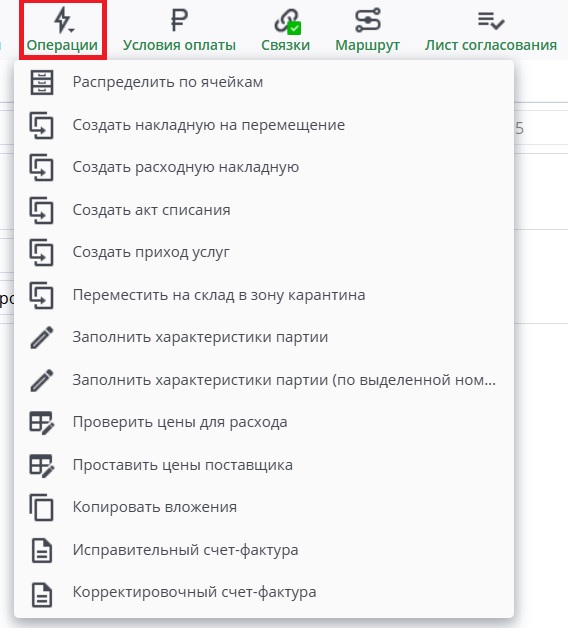 2. По операции из документа Расходная накладная