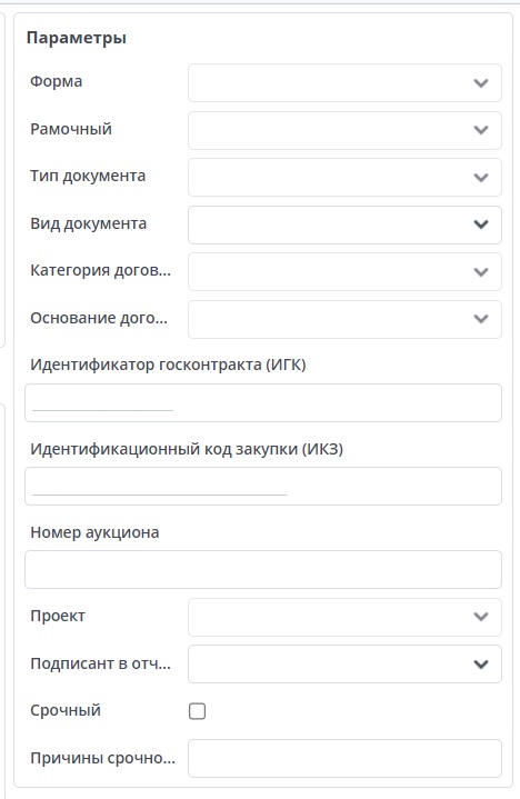 • Причины срочности - текстовое поле, заполняется вручную. Если документ срочный, то ставится признак Срочный.