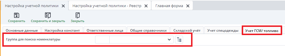 Настройка учетной политики