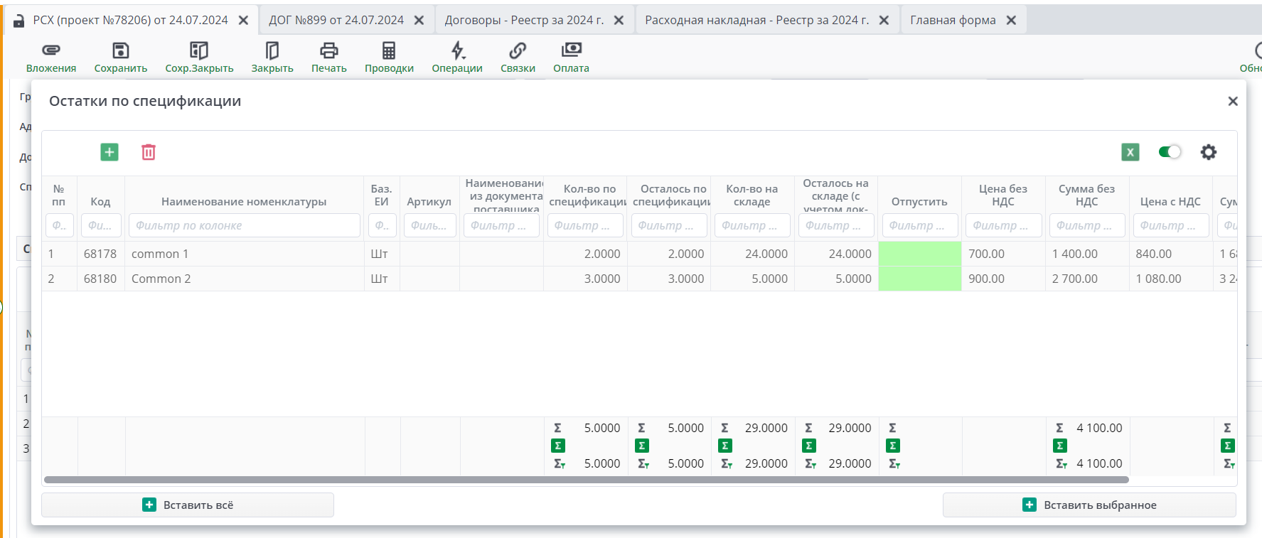Расходные накладные