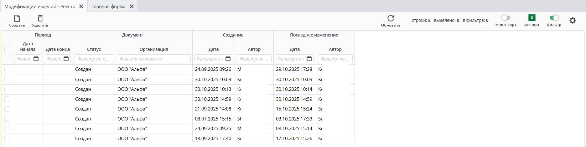 Модификации изделий