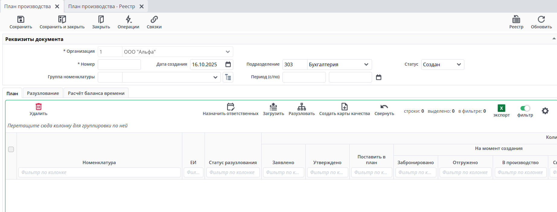 План производства