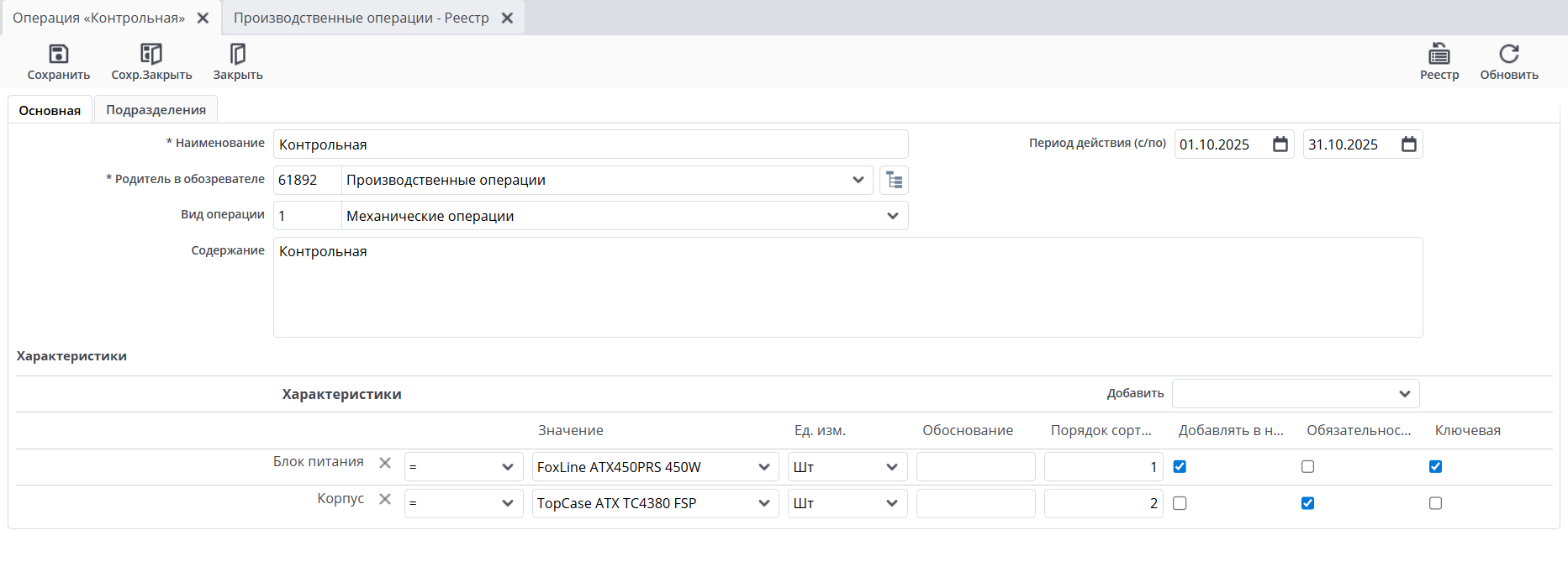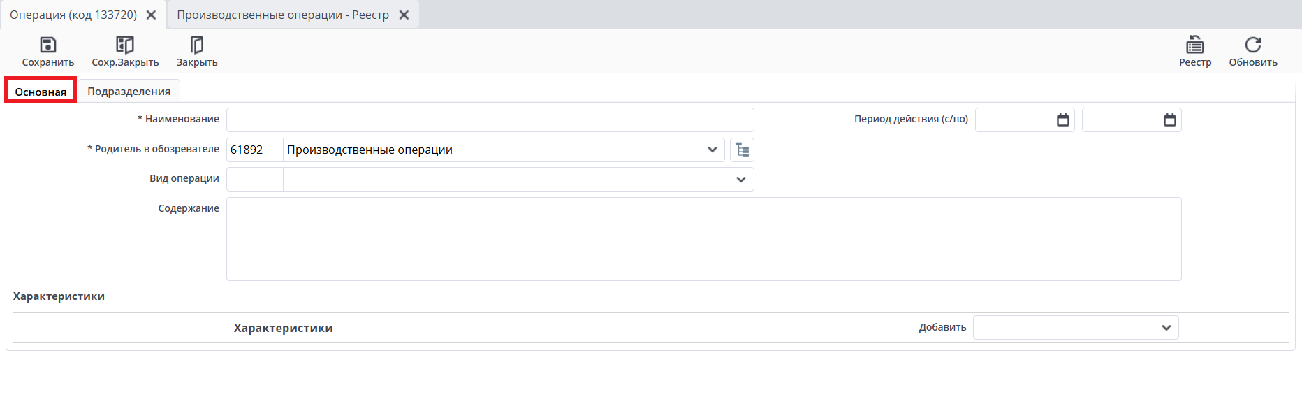 Откроется новый документ, который состоит из двух вкладок: Основная и Подразделения.