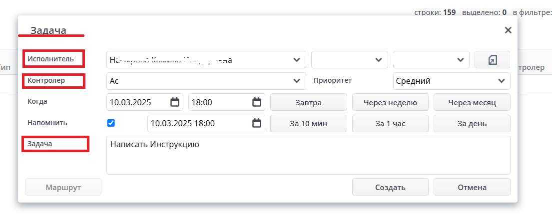 - Контролер - указывается в том случае, если исполнение задачи нужно проконтролировать