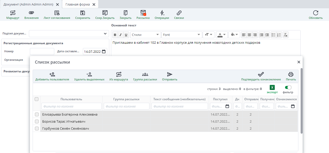 Настройка внутрисистемных уведомлений