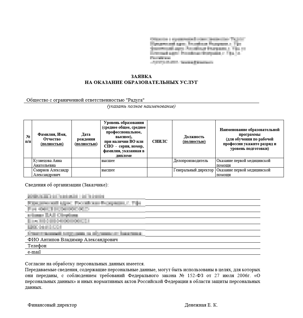 Заявки на обучение